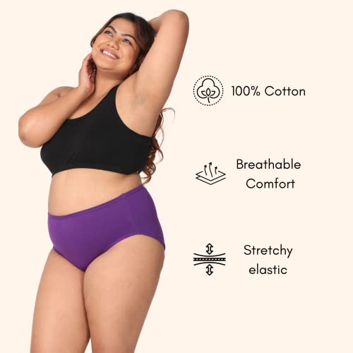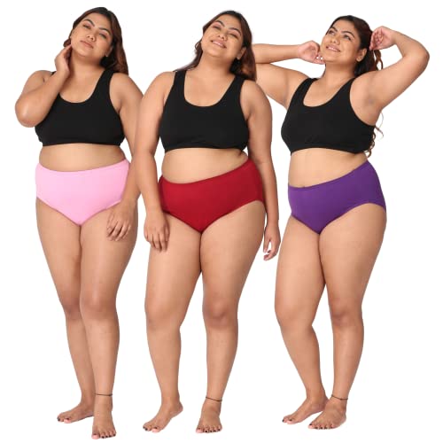 Adira | Plus Size Cotton Panties for Women | High Waist Panty with Full Coverage | Inside Elastic – No Elastic Exposure to Skin | Plus Size | Pack of 3