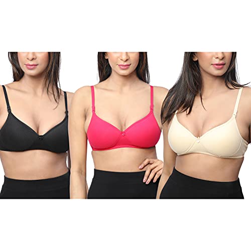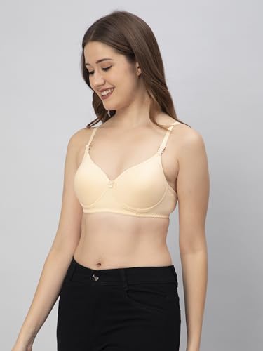 Padded Bra For Women: B-Cup | Seamless | Non-wired | Soft Molded Padded Cups | Medium Coverage | Detachable Straps | Deeper Back | Soft Strechable Cotton