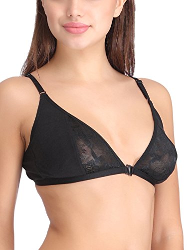 Non-Padded Bra Crafted With Comfortable Cotton Rich Fabric. Black Solid Bra. Non-Padded Double Layered Cups. Demi Cups For 3/4Th Coverage. Non-Wired For All Day Comfort. Plunge For Deep Necklines. Has Adjustable Straps.