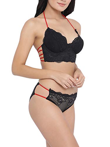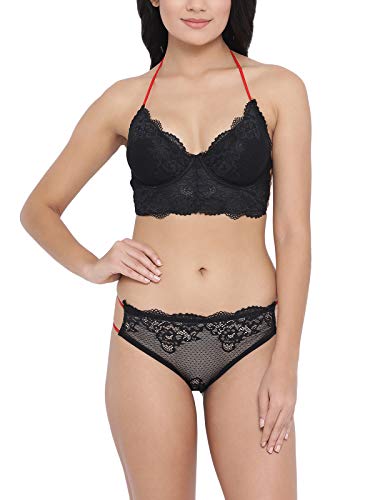Product type: plunge bra & panty set; fabric Type: lace; pattern type: SOLID; padding: non- padded; wire support: underwired.