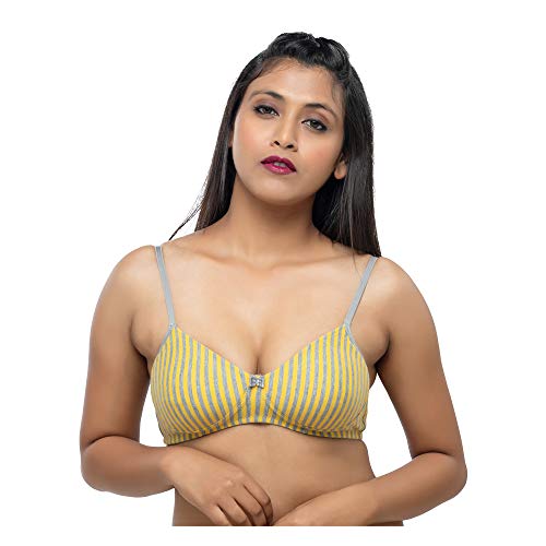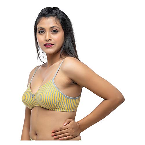 DAISY DEE Women’s Cotton Full Coverage Elegant Stripes Design Padded Wirefree with Different Color Bra – Frolic
