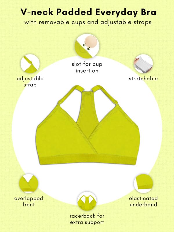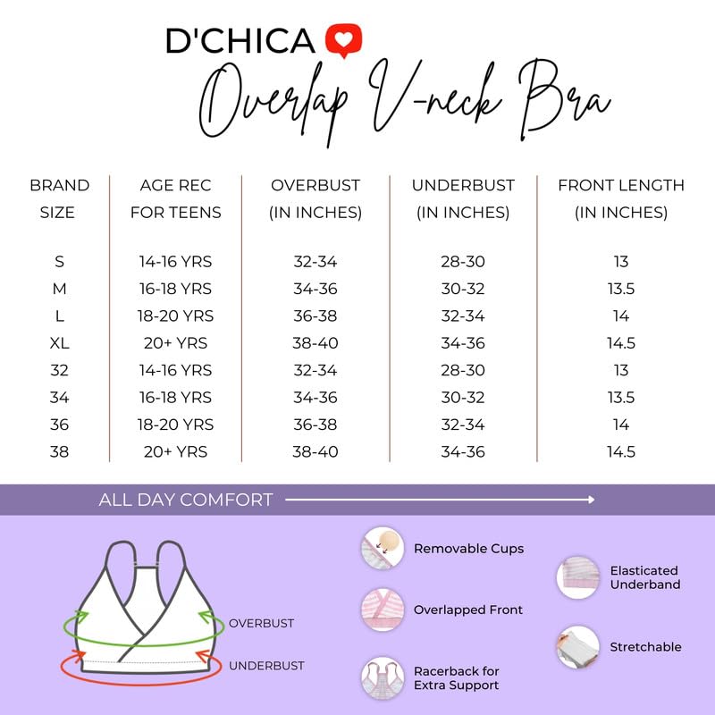 D’chica V neck padded bra for girls and women offers exceptional comfort with its soft, breathable materials and ergonomic design, making it an ideal choice for all-day wear. This hookless bra for women and girls you feel positive and inspired during gym sessions or outdoor adventures. Our girls/young women padded bralette are made from soft, breathable and stretchable cotton fabric to keep you cool all-day long.