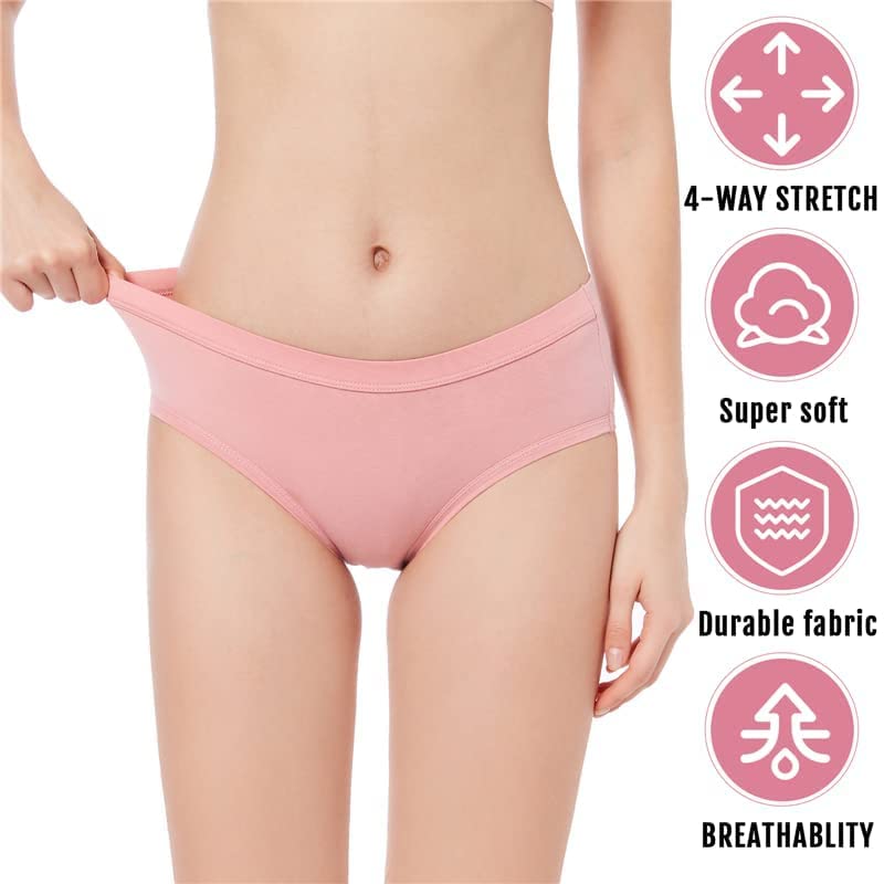Soft, comfortable women’s cotton underwear with enough stretch, mid waist and full Seat coverge design.Cotton stretch briefs, No ride up, no rolling down-you don’t feel them at all when walking around.Ladies Mid-rise Cotton panties with excellent workmanship,flat seams and edges,Fits legs snugly without cutting, Waist elasticity does not cut or dig.Full coverage women’s underpants are available in Multicolors, and different colors reflect your different moods every day.