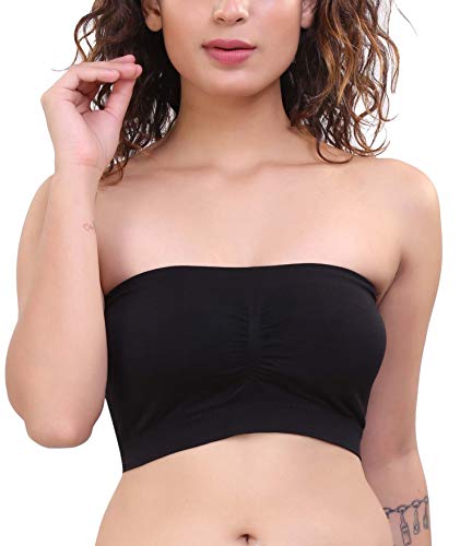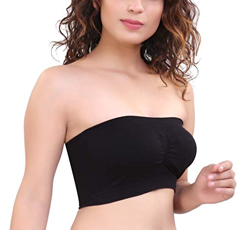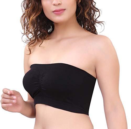 Women and Girls padded tube bra comes with seamless cup giving complete support. Constructed with seamless and soft material, the top effortlessly creates the perfect comfortable fit that allows a large range of active movements. The material absorbs sweat well and doesn’t make you feel sticky and wet. The soft padding gives a nice shape and allows for a sheer top over it. Removable pads are easy to put in & take out. The ribbed band that hugs the body provides a secure, well fitted look. This soft Padded Tube Bra will keep u feel light and comfortable all day long. Wireless strapless bra go with any off shoulder tops and western outfits. No stress at all when you wearing these to work place. Super comfortable and they stay in place.