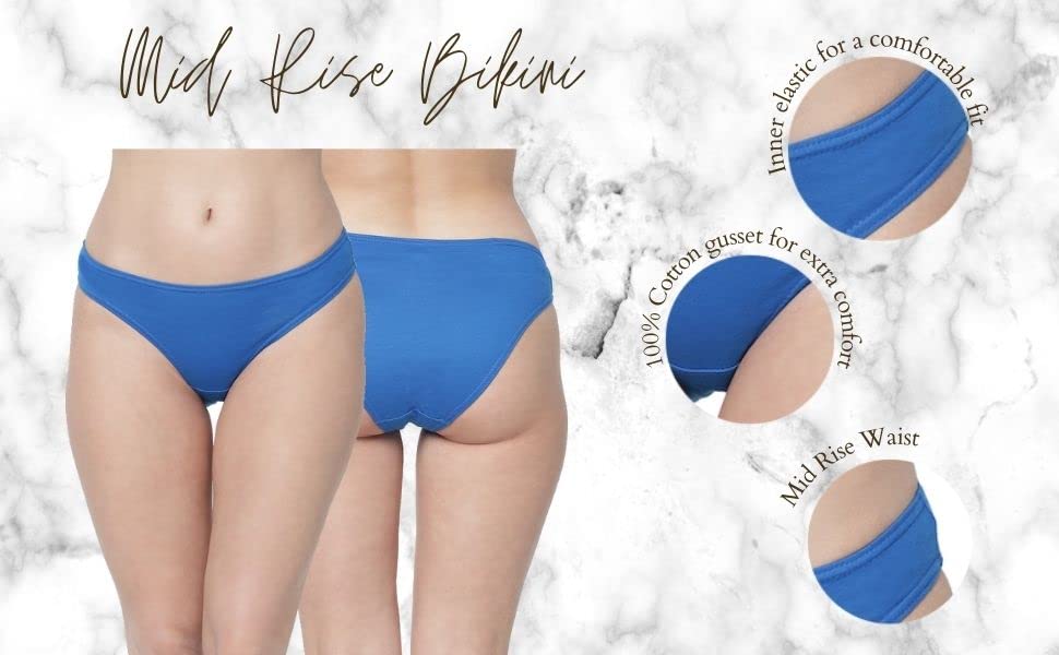 Pack of 6 Women Underwear Cotton, Mid Waist Classic Leg Cut Full Coverage Pop Colours Bikini Panties . Double Cotton ( Crotch) Gusset for Comfort and Hygiene. Soft Inner Elastic Waist Band for day Long comfort. Full Coverage Back Bikini Panties. Fabric : 90% Cotton,10% Elastane. Soft Cotton Fabric Undergarments for Women .Crafted with Soft Inner Elastic that leaves no impressions even after a long day’s wear, you’ve finally met an underwear that makes you feel and look great.These women’s panties are not only suitable for daily wear, but also fit for matching high-waisted pants, jeans and skirts.Care Instructions: Hand wash,Machine Wash ,Do Not Bleach. Hand wash with same colours use cold water (don’t bleach and iron, also don’t dry clean and use the dryer). Inner wear is all about Grace and poise experienced by the wearer. Its a perfect undergarments for women.Ideal and Must to Wear with Mid Waist Jeans,Skirts,Jaggings and Office Trousers . Hip Sizes : Small: 83-89 Cms ; Medium: 90-97 Cms; Large: 98-105 Cms ; XL : 106-112 Cms ; 2XL:113-119 Cms .Women Panty Combo Pack of 6