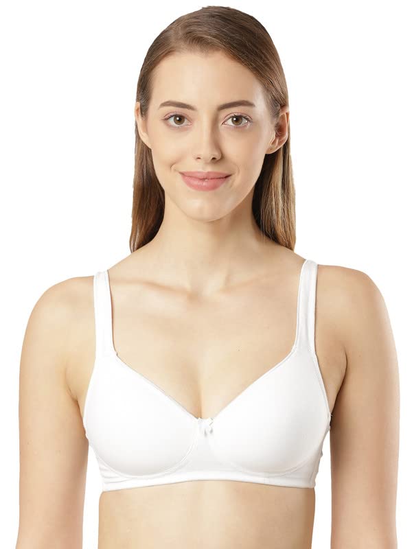 Style number: FE35 collection: fashion essentials material composition: 92% cotton & 8% spandex genuine Jockey comfort, fit and quality. Super combed cotton lycra stretch fabric. Wide fabric strap in front for added support. Soft padded molded cup. Soft and smooth adjustable straps. Label free for all day comfort.