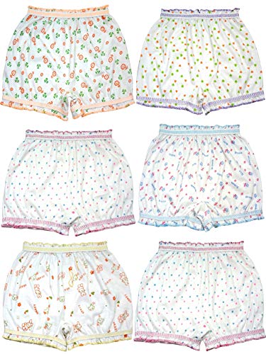 KIDBIRD Pure Cotton Printed White Bloomer Panties for Girls & Kids (Pack of 6)
