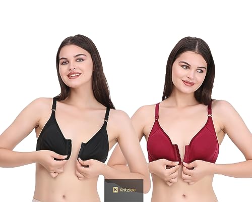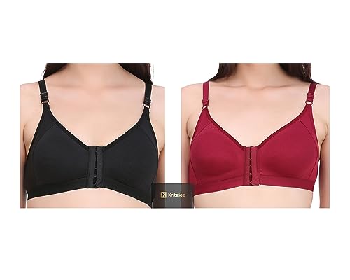 Front Open Cotton Bra:-comfort and convenience with this cotton-rich bra with front closure. The front hook and eye opening makes this style best suited for women who are seeking the convenience of front closing mechanism. It is also perfect for women recovering from surgery.This full cup bra has a double layer fabric lining for high coverage, while side panel gives a firm yet gentle hold and support at the sides. Back is styled to form ‘ U ‘ shape along with straps for added support. Non-Padded, Double Layered Cups:-Bra cups are non-padded, making the cup light and breathable. Provides full coverage to the bust. Cups are double layered for modesty and excellent fit. Front Opening:-This bra has a convenient front hook and eye opening that makes this style best suited for women who are seeking the convenience of front closing mechanism. Front closure function means that the style provides a smooth back silhouette too. Smooth Adjustable Straps:-Bra straps having sliders, helps to adjust according to your fit and comfort. Smooth adjustable straps rest comfortably on shoulders and leave no marks on your skin. Wire Free:-Bra is free from underwire, for a less structured fit and provides comfort for a long day use. U Back Style:-Back wings are styled to form U shape along with straps for added support.