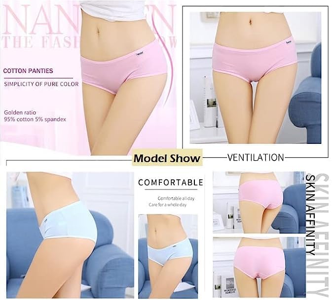 LOURYN KOULYN cotton underwear for women is crafted with 80% cotton and 5% spandex, which is super soft and breathable, providing you with a flexible comfort wearing experience.This mid waist hipster is tag-less, provides full back coverage, while the ultra-soft fabric ensures no marks and extra snugness.Fit Type: Bottom Style.Cotton panties for women is low rise design for no show purpose, bikini style and great for low rise jeans/pants/dresses.