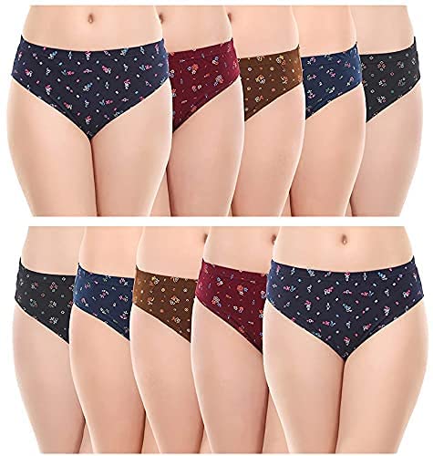 LYKOR Girls Cotton Print Panties with Inner Elastic|Soft Cotton Panties for Girls|Cotton Briefs|Girls Underwear|Girls Innerwear [Colors May Vary] Pack of 10