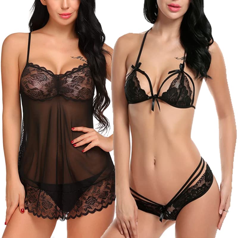 Mallory Winston Combo Offer! Women Babydoll Nightwear Lace Bra Panty Lingerie Set