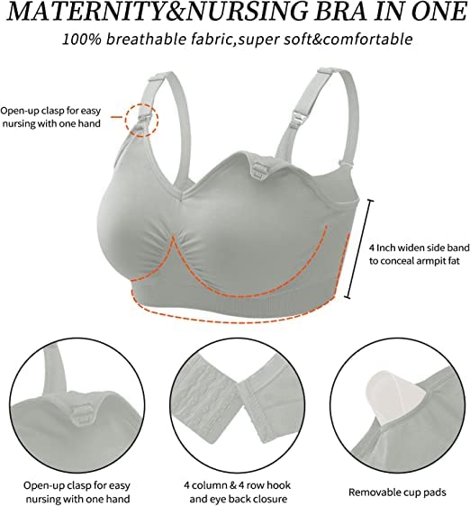 Super Comfortable & Soft: Our nursing bra is made from buttery soft and breathable fabric for ultimate comfort for mom and baby, with great stretch to adapt to your changing conditions during pregnancy and breastfeeding body. Size LARGE Fits the following Sizes: 34C, 34D, 34 E, 36a, 36B Size X-LARGE Fits the Following Sizes: 36C, 36D, 36E, 38A, 38B