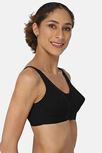 โ The seamed cup offers superior support and evenly spreads the breast mass across. โ Portrays you with naturally enhanced curves. โ Front closure with hook and eye fasteners. โ Side panels aid in reducing the bulginess on the side of the armpit. โ Double layered cups conceal nipple show through. โ Regular bra with an adjustable cotton strap. โ Easy to use for women with inflexibility.
