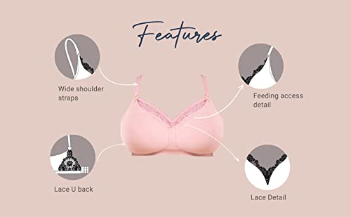 Hello Mommy- meet the feeding bra, the bra that does it all, just like you. Designed keeping in mind your comfort, it has adjustable straps and is crafted in sumptuously soft cotton fabric. With lace at inner sling for modesty and nursing clip to make it functional, you can stay comfy and confident- all day, everyday. Non padded for ultimate comfort Overlap neckline for ease of feeding High coverage for modesty Double layered fabric on cups Super soft cotton fabric for comfort Wide bottom band for extra support