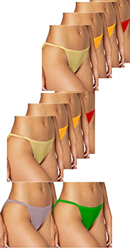 pavvoin Women’s String Thong Bikini Cotton Lycra Panty for Women and Girls for Daily use (Pack of 10) Panty(multicolered,stemstem1)