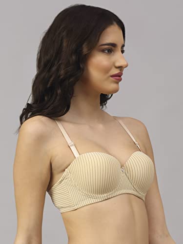 PrettyCat Strapless Padded Striped Bra.Soft Fabric pushup pads.strapless style.Comes with pair of straps.Striped for fashion