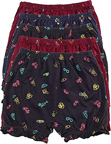 Material soft comfortable lightweight, kids feel free for wearing, moisture absorption,good elastic Multi Colour Pack Of 5 kids Cotton Print Bloomer All round non-binding fit for a 24 hours comfort