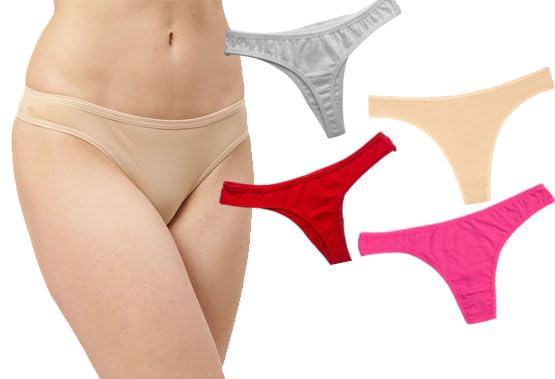 Silverlake Women Cotton Comfortable Fabric Daily Use Regular Wear Mid Rise Thong Panty Pack of 4 (Pink Red Skin White)