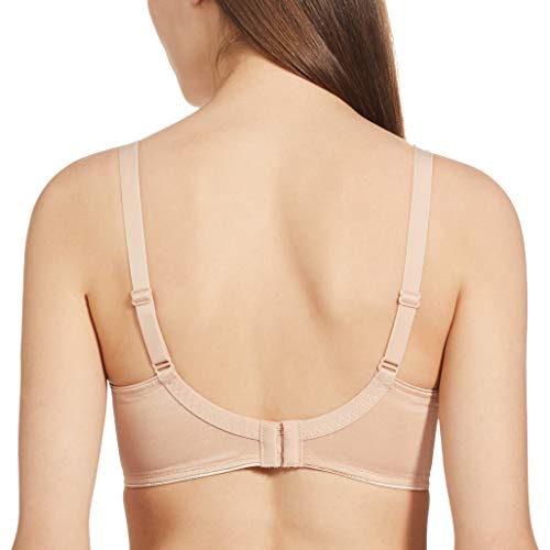 This trendy, young series minimizes the bust visually by one size and offers excellent support and stability for larger cups. It comes with smooth cups and lace embroidered abric on the upper cups giving it an elegant touch.