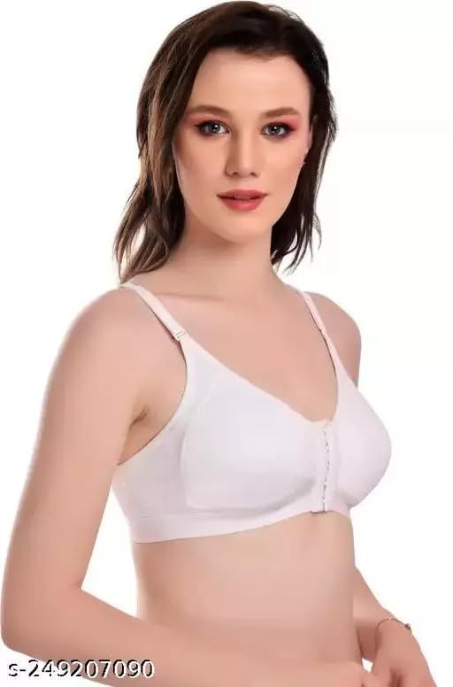 comfort and convenience with this cotton-rich bra with front closure. The front hook and eye opening makes this style best suited for women who are seeking the convenience of front closing mechanism.It is also perfect for women recovering from surgery. This full cup bra has a double layer fabric lining for high coverage, while side panel gives a firm yet gentle hold and support at the sides. Back is styled to form ‘ U ‘ shape along with straps for added support. Non-Padded